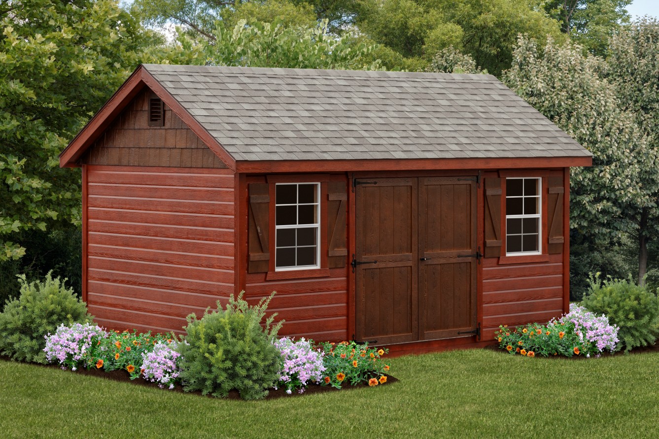 Comes standard with 6' walls, double door, two windows, vents and shutters. We offer optional 7' walls for the A-Frame.